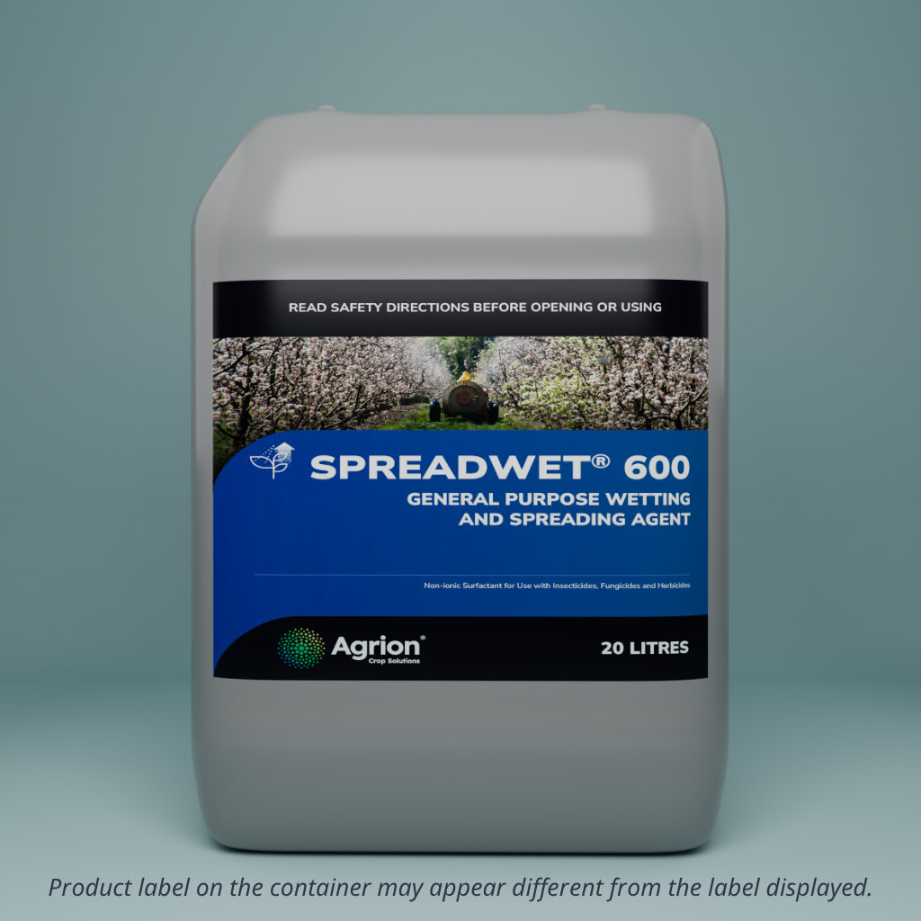 SPREADWET 600 is a 60% w/v non-ionic horticultural wetting agent for use with herbicides, fungicides and insecticides.