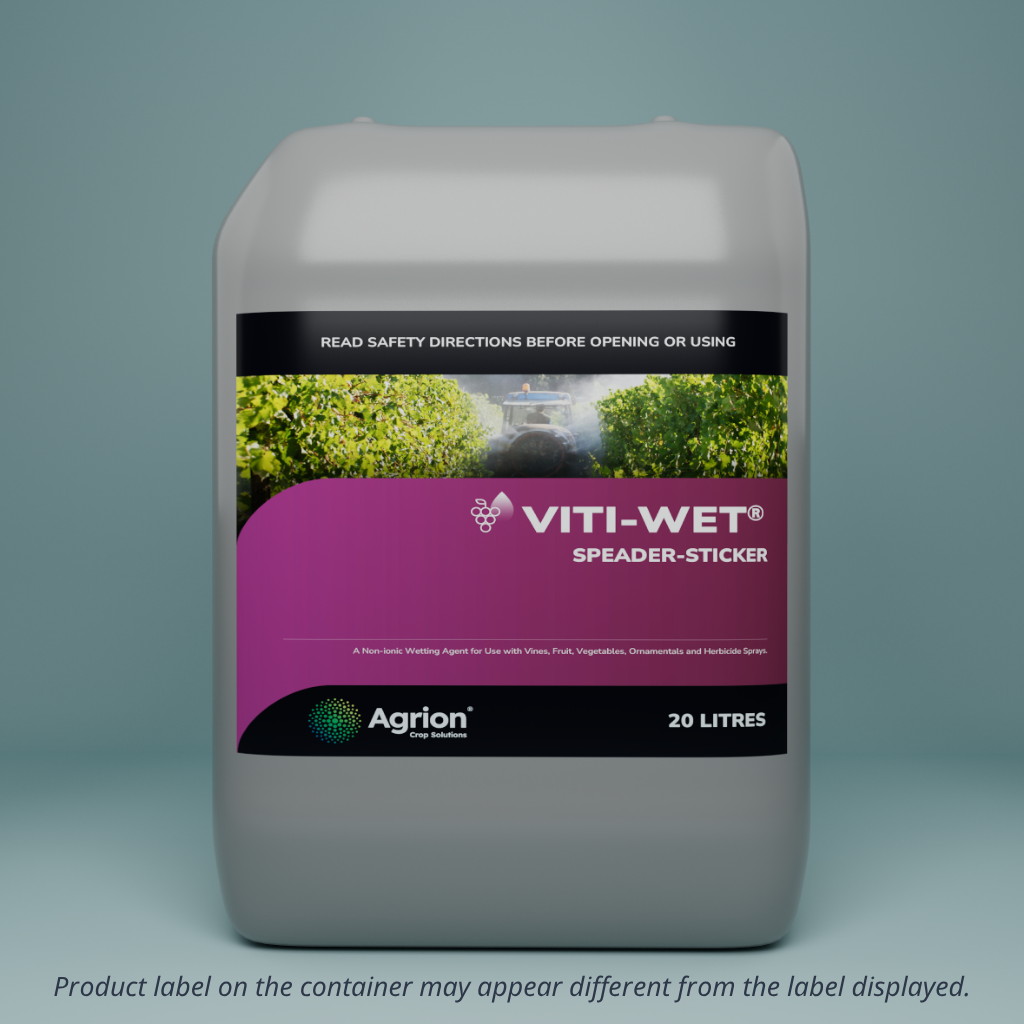 VITI-WET is a 1000 g/L non-ionic, non-abrasive wetting agent for use in vines, fruit, vegetables, ornamental and herbicide sprays in horticultural applications.